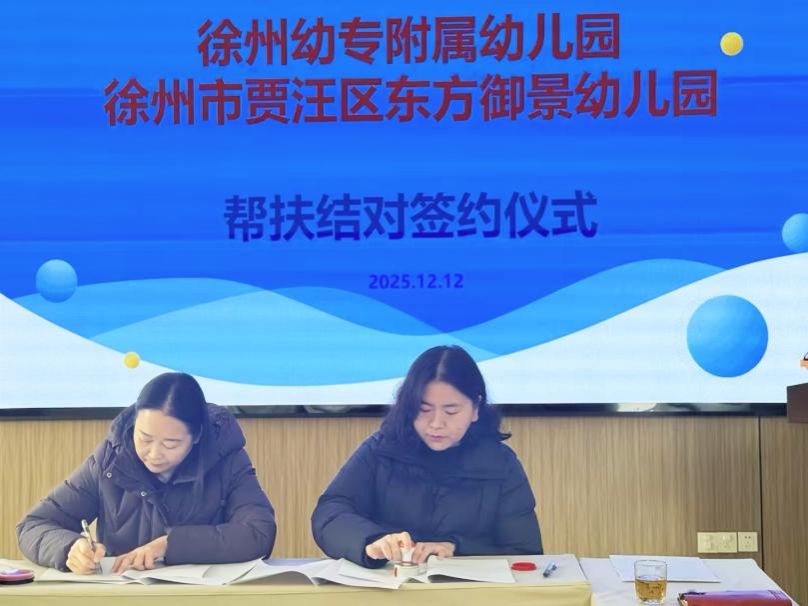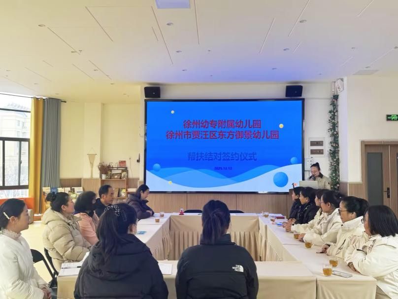 为深入贯彻落实学前教育优质均衡发展要求,充分发挥高校附属幼儿园的示范辐射与专业引领作用,2025年12月12日,徐州幼专附属幼儿园与贾汪区东方御景幼儿园结对共建启动仪式暨首次专题指导活动成功举办。贾汪区学前办王保玲科长、泉城教育中心校王训波校长、双方幼儿园园长及骨干教师代表共同出席,标志着两园在教育共研、资源共享、发展共进的道路上迈出坚实一步。
